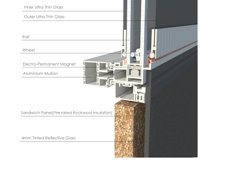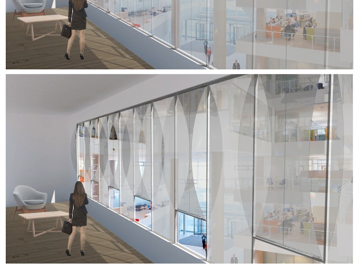 Owing to the rapid development of construction materials in building industry, tendency towards smart and light design solutions using modern architectural principles is growing noticeably. Ultra-thin glass is a relatively new material which could be replaced to the thicker glasses in traditional windows to create a new concept for the building. Its promising prospects due to its low weight and its ability to be bent could develop a novel adaptive glass panel concept as a breathing skin in building. Adaption can be implemented using smart materials capable of inherently sensing and responding to environmental changes with a type of actuation action. In this research study, the advancements of smart material technologies have been elaborated, together with the feasibility of these materials in adaptive architecture aspect. At the end, a novel adaptive glass panel concept has been offered by means of shape-memory alloy (SMA) cables in order to create a breathing skin for façade. The panel has been placed as an inner and outer skin in the selected case study. Its validation has been assessed through Finite-element numerical studies and experimental tests. The structural efficiency of the panel is evaluated in Abaqus software by analyzing several glass laminate configurations under bending for inside and outside situation and taking into account the effects of ordinary wind pressures for the outside condition. Two different Mock-ups have been built during the process in order to prove the feasibility of the concept. The Mockup models have been exhibited in “Challenging Glass Conference 6” at TU Delft as a successful concept for future design developments.